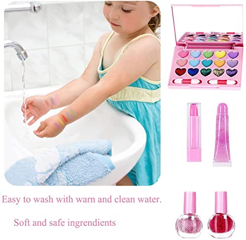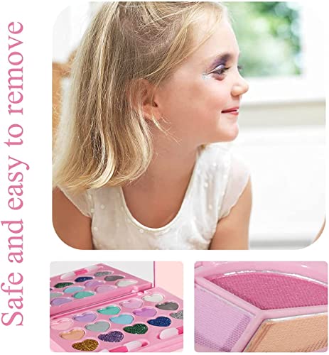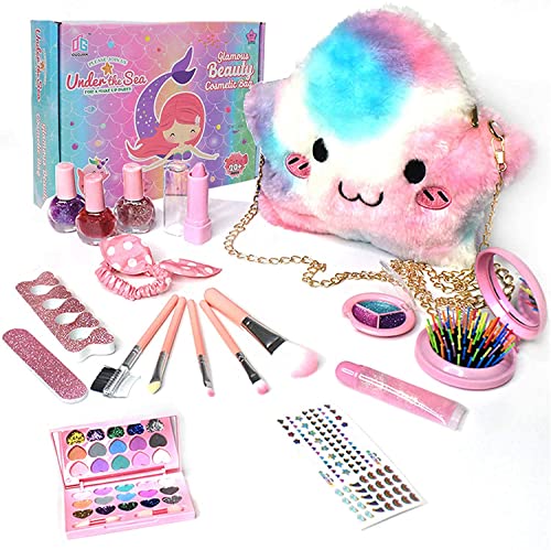 DDMA - مجموعة مكياج للأطفال للبنات، مجموعة مستحضرات تجميل قابلة للغسل مع شنطة قطيفة من مواد غير سامة، ألعاب مكياج للعب التظاهري، ألعاب تجميل مناسبة لعيد الميلاد من دي دي ام ايه