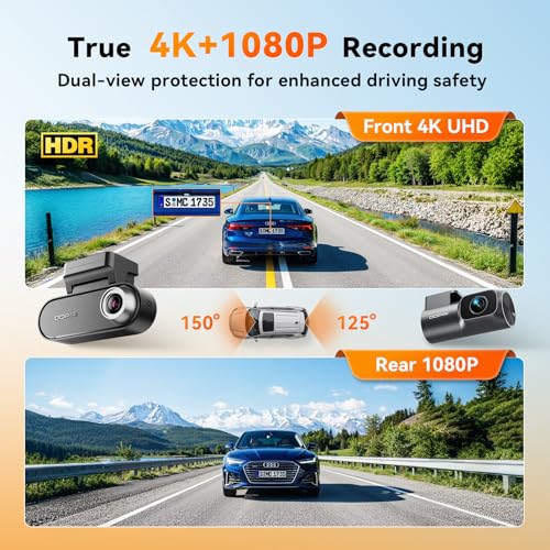 - 【كاميرا داش مزدوجة حقيقية بدقة 4K + 1080P】بتصميم أنيق بدون شاشة، تتميز كاميرا التابلوه المزدوجة دي بي ايه اي ان 5 بـ 7 مجموعات عدسات بصرية عالية الجودة ورؤية بزاوية واسعة 140 درجة، تلتقط لقطات أمامية 2160 بكسل وخلفية 1080 بكسل بدقة عالية. تسجيلاتها بجودة سينمائية توفر أدلة واضحة وسلسة في حالات الحوادث والنزاعات المتعلقة بالتأمين، مما يجعلها كاميرا سيارة مثالية للسيارات الخاصة، والمركبات العائلية، والسائقين الجدد، وسائقي أوبر وكريم.