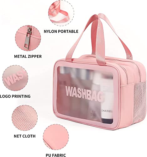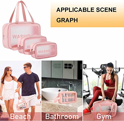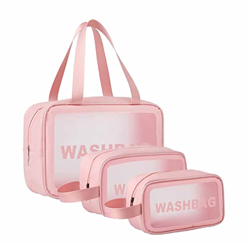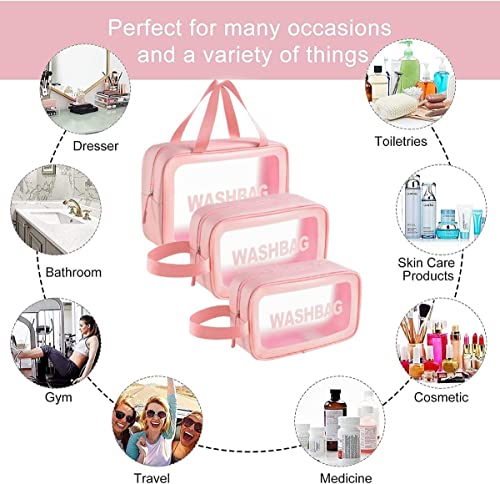 DDSHUN - 3 قطع من حقائب مستحضرات التجميل الشفافة حقيبة مستحضرات التجميل حقيبة غسل حقيبة السفر حقيبة الملابس الداخلية حقائب شفافة أدوات النظافة للرجال والنساء والفتيات السفر العمل عطلة الحمام - بينك، زهري