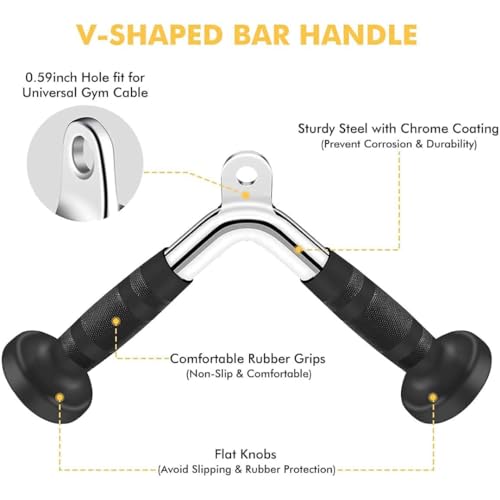 DE JURE FITNESS - دي جوري فيتنيس قضيب على شكل حرف V من بيسيب وثلاثي الرؤوس مع قضيب ستيل شديد التحمل