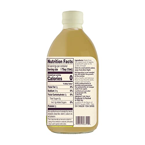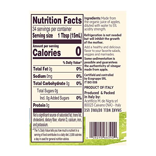 de nigris - خل التفاح العضوي الخام وغير المصفى 16.9 اونصة (500 مل) | خل التفاح من مصدر للعناصر الوظيفية لتوازن عملية التمثيل الغذائي | خل التفاح العضوي