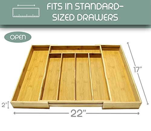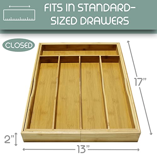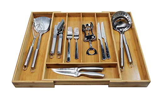 DE'VELO - منظم أدراج مطبخ قابل للتعديل من الخيزران ديفيلو صينية تنظيم أدوات مائدة فضية حامل تناول الطعام وصينية المائدة مع فواصل مخددة لأدوات وأدوات المطبخ 5-7 مساحات تخزين