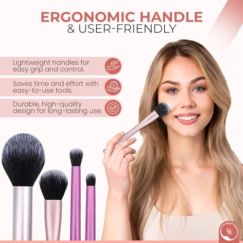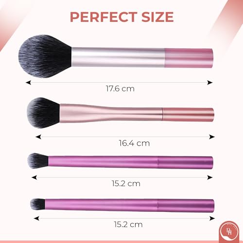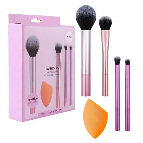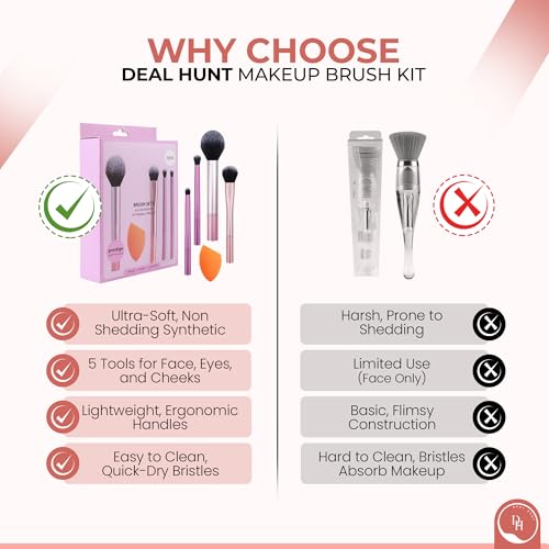 Deal Hunt - مجموعة فرش مكياج احترافية من ديل هانت، 4 فرش + إسفنجة مزج، لون وردي