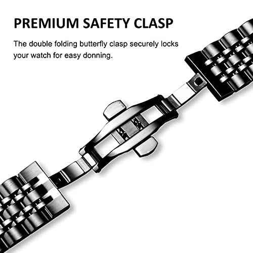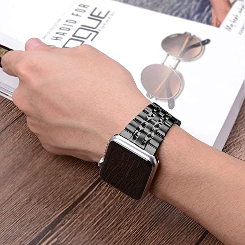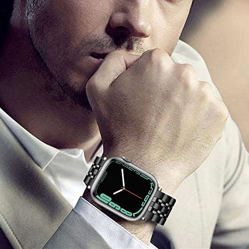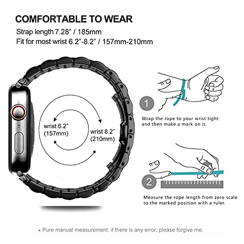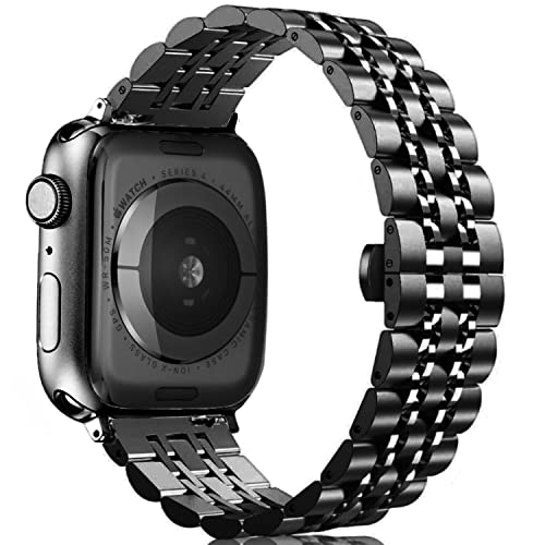 DEALELE - سوار متوافق مع ساعة اي ووتش 42 ملم 44 45 49 بديل من 7 صفوف الستانلس ستيل لساعة آبل سلسلة 8/7/6/5/4/3/SE/الترا للنساء والرجال ديليل أسود