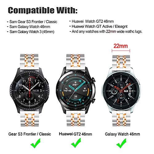 - [ملاءمة مثالية]: مناسب لساعة سامسونج جير اس 3 فرونتير/ جير اس 3 كلاسيك/ ساعة جالكسي 3 (45 ملم) / ساعة جالكسي (46 ملم) / ساعة هواوي جي تي 2 46 ملم / ساعة هواوي جي تي اكتيف / اليجنت / موتو 360 الجيل الثاني 46 ملم / ساعة فيكتور لونا الذكية وأي ساعة مزودة بعروات ساعة بعرض 22 ملم.