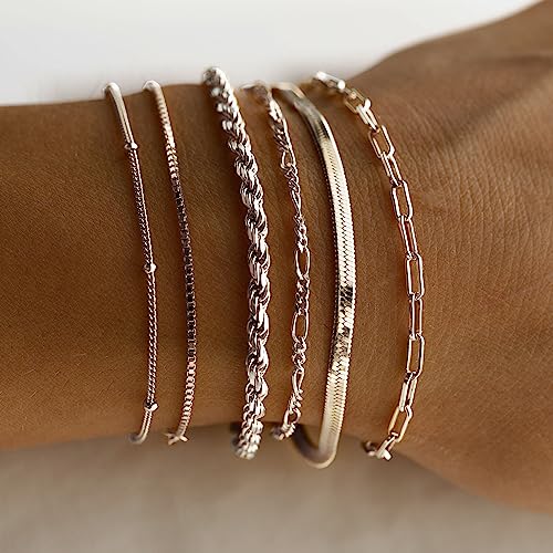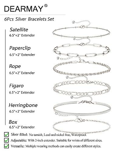 DEARMAY - ديارمي اساور من الفضة الاسترلينية للنساء مجموعات مجوهرات فضية انيقة عصرية قابلة للتكديس بحبل مشبك ورق وصندوق ثعبان مجموعة سلسلة فيجارو هدايا والفتيات