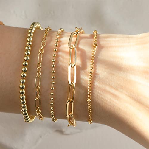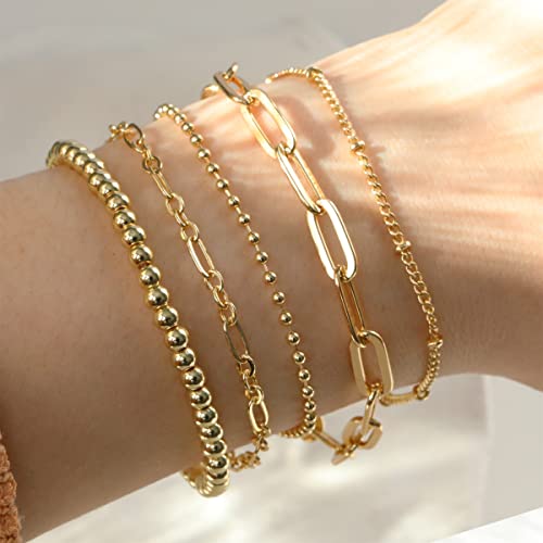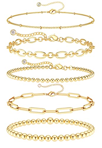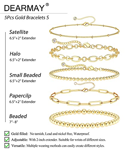 DEARMAY - ديارمي اساور من الذهب الحقيقي عيار 14 قيراط للنساء والفتيات مجموعة مجوهرات ذهبية خرز سلسلة انيقة بمشبك ورق هدايا معدن زركونيا مكعب