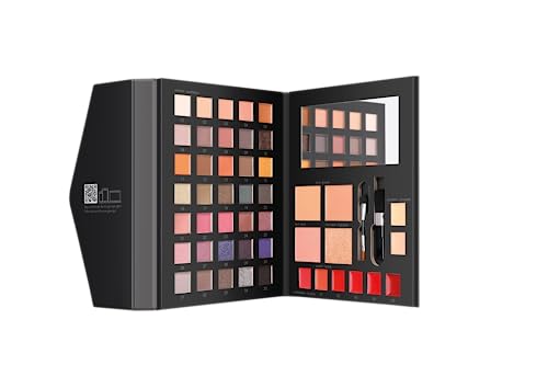- محتويات العبوة: 35 أيشادو، 6 ملمع أو أحمر شفاه، 1 بودرة خدود، 1 هايلاتر، 2 برونزر، 2 كونسيلر، 2 اكسسوارات، 1 مراية.