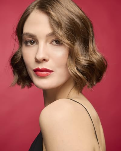- أحمر شفاه كلاسيكي باللون الأحمر الزاهي لإطلالة ساحرة.