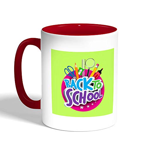 Decalac - كوب سيراميك للقهوة back to school بطبعة العودة للمدرسة ، لون احمر، حافظة بسيطة