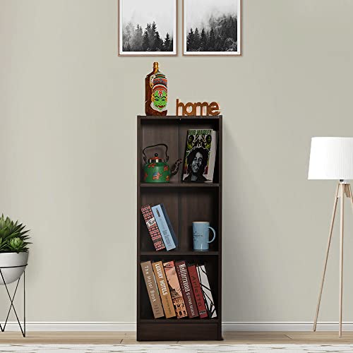 DeckUp - رف كتب ووحدة عرض خشبية هندسية بـ3 أرفف من ديك اب (لون خشب الجوز، لمسة نهائية مطفية)