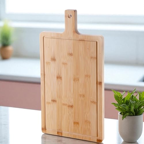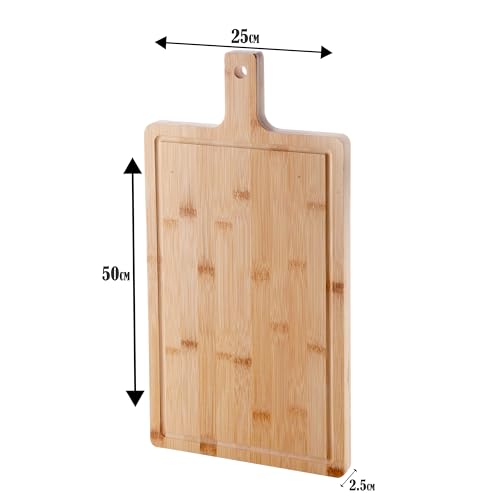 Deconox - لوح تقطيع سميك من الخيزران من ديكونوكس - لوح تقطيع كبير مضاد للبكتيريا وقابل للغسيل - لوح تقطيع مستطيل متين للمطبخ، (50 × 25 × 2.5 سم)