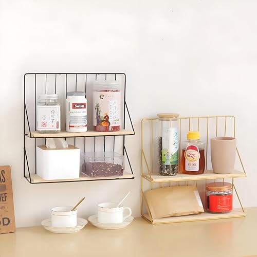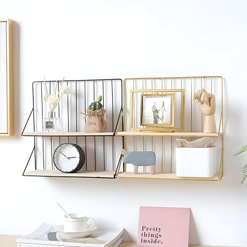 Generic - ارفف ديكور - ارفف حديدية فنية مثبتة على الحائط تجمع بين الأناقة الزخرفية والتخزين العملي، مثالية لإضافة الأناقة والعملية إلى البيئات المنزلية الحديثة (قطعتين)