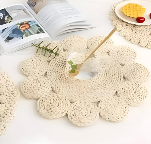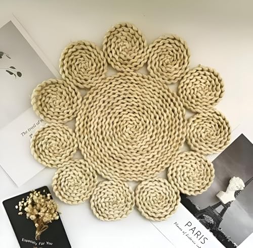 Generic - قواعد أكواب للديكور - قاعدة أكواب مصنوعة يدويا من الخوص بتصميم زهور، واقي حراري متعدد الأغراض، ترفع من جو تناول الطعام برقي، يمكن استخدامها كملحق رائع للتصوير الفوتوغرافي لديكور الطهي