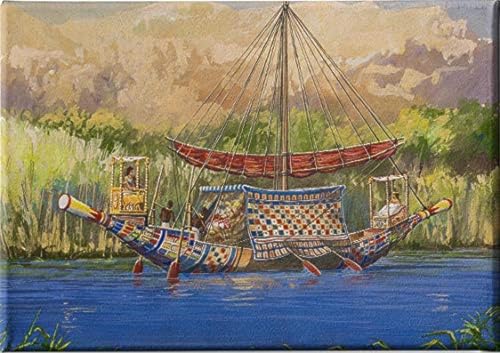 Other - لوحة قماش مستطيلة مركب فرعوني 05 من ديكوريشن سبيس - طباعة رقمية، 180X120 سم، متعدد الألوان
