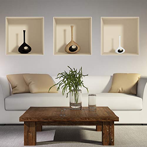 Generic - ستيكر مزخرف ثلاثي الأبعاد برسمة فازة دائرية (3 قطع مقاس 35 × 1 م)