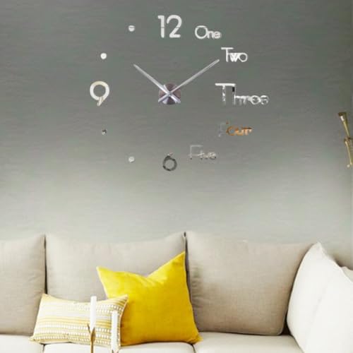 Generic - ديكور ساعة حائط 3D - أرقام ونقاط فضية، تصميم عصري 80-90 سم