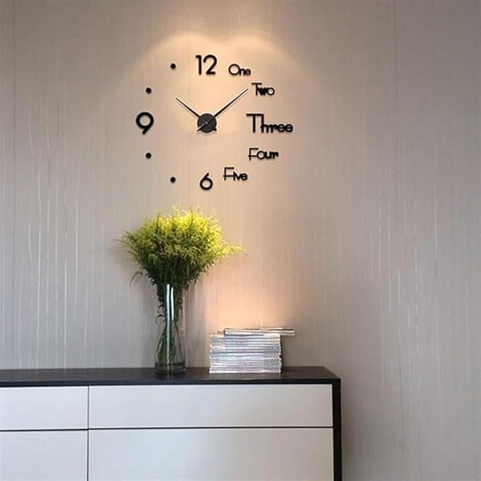 - تصميم عصري: ساعة حائط ثلاثية الأبعاد بتصميم مميز يجمع بين الأرقام والكلمات باللغة الإنجليزية