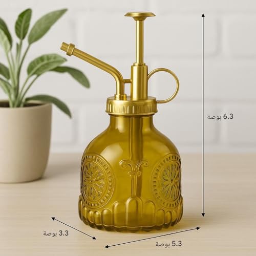 Generic - بخاخة كهرمانية مزخرفة من الزجاج عتيق بفوهة نحاس للنباتات الداخلية، ارتفاع 16 سم، تضفي الجاذبية والعملية إلى أدوات البستنة الخاصة بك، أصفر، قطعة واحدة