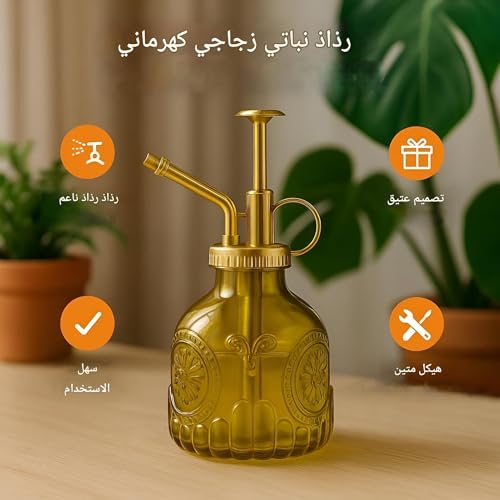 - ارتقِ بتجربة العناية بالنباتات الخاصة بك مع بخاخة النباتات الزجاج الكهرمانية المستوحاة من الطراز العتيق، ومصممة للجمع بين الأناقة والعملية. تتميز بتصميم زجاجي مزخرف بنقوش بارزة على شكل ميداليات، مما يضفي عليها مظهراً جذاباً وأنيقاً يناسب أي ديكور داخلي، ويجعلها قطعة مثالية لمحبي النباتات الذين يفضلون التصميمات العتيقة.