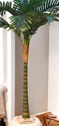 - تصميم واقعي: نخلة اصطناعية عالية الجودة مع أوراق خضراء كثيفة تحاكي النخيل الطبيعي بدقة عالية