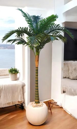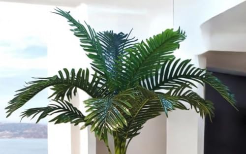 Generic - نخلة اصطناعية ديكورية، مع وعاء أبيض أكليرك ، نباتات زينة داخلية