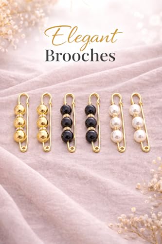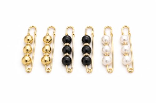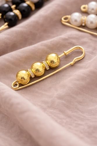 Generic - دبابيس بروش مزخرفة بالخرز، خطاف ذهبي باللون الابيض والاسود والذهبي للحجاب والشالات والشنط والملابس