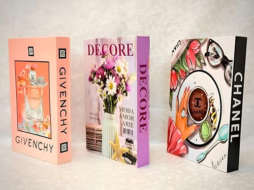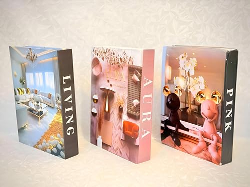 Generic - مجموعة كتب مزخرفة - مجموعة أنيقة من 3 قطع بتصميم مغلق فريد وألوان غير متكررة لنمط داخلي عصري