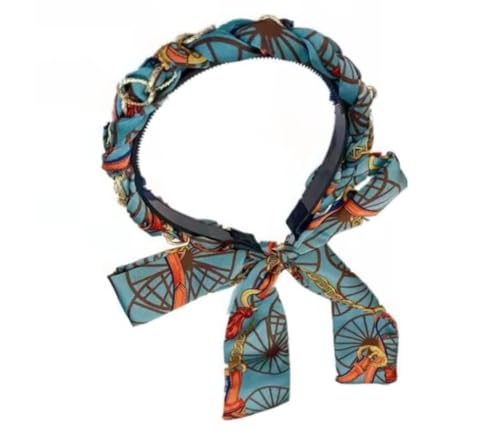 - مزايا التصميم: شريط رأس أنيق على شكل فيونكة بنمط مستوحى من الطراز القديم باللون الأزرق الفيروزي، يتميز بزخارف هندسية مزخرفة وزخارف على الطراز العتيق