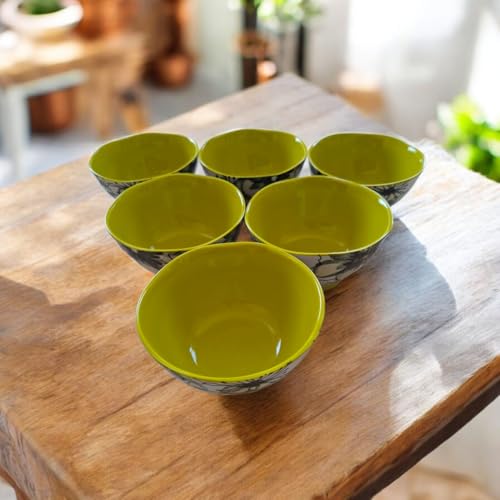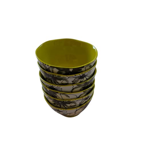Generic - طقم سلطانيات بوله سيراميك مزخرفة – 6 قطع – أوعية تقديم للسلطة، الشوربة، الأرز، الفواكه، آمنة للغسالة والمايكروويف – تصميم أنيق باللون الأخضر والزهور