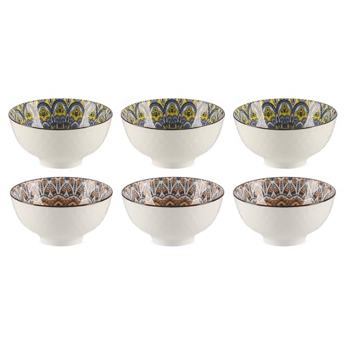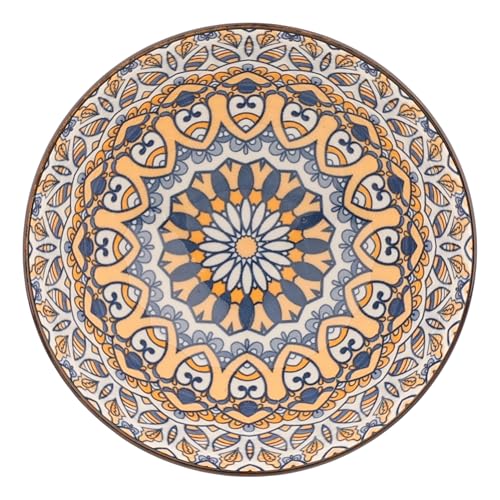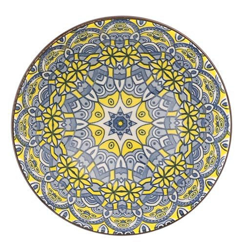 Generic - أطباق عميقة سيراميك مزخرفة بنقشة ماندالا، طقم من 6 قطع، تصميم أزرق وأصفر وبرتقالي