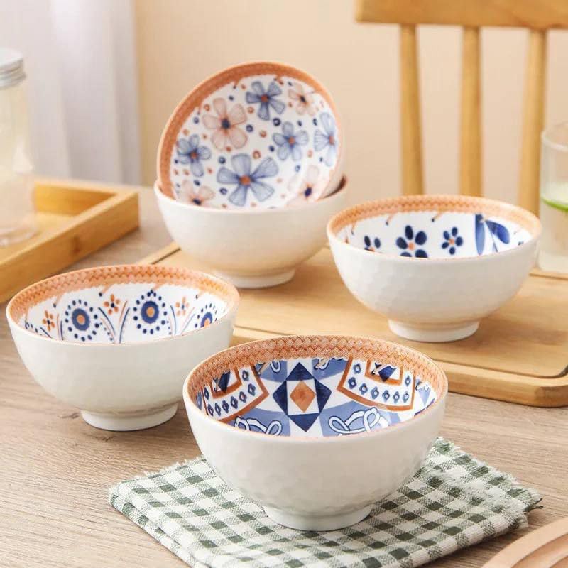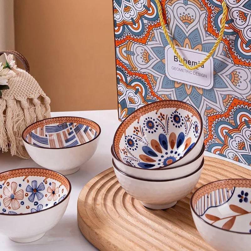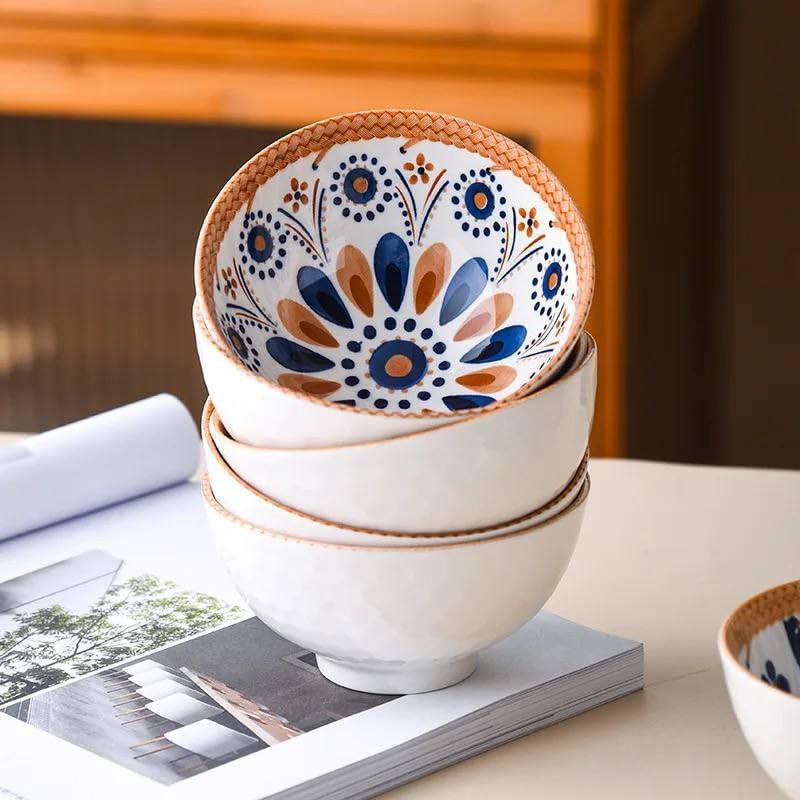 - مجموعة أواني: طقم من 4 أوعية سيراميك بتصميم عصري مع زخارف أزرق وبرتقالي جميلة
