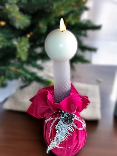 generic - حامل شموع زينة للكريسماس، بطول 35 سم بلون ابيض مع قاعدة مخملية وردية، بنمط مخروط الصنوبر للعطلات الشتوية