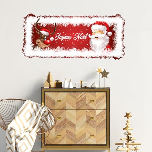 Generic - ملصق زينة للكريسماس - كريسماس جويكس نويل الرنة وسانتا كلوز (100 × 45 سم)