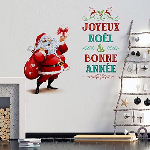 Generic - ملصق زينة للكريسماس - سانتا كلوز جويوكس نويل وبون اني (60 × 70 سم)، فينيل