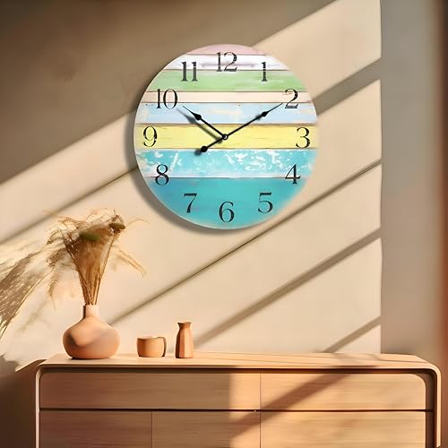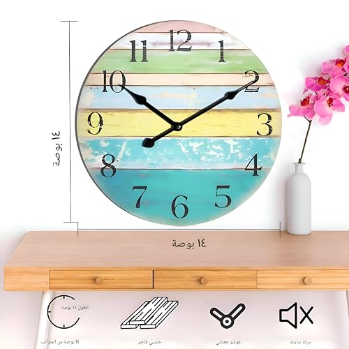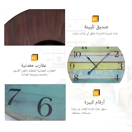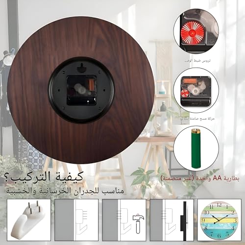 Generic - ساعة حائط خشبية فريدة من نوعها مصنوعة يدويًا بألوان نابضة بالحياة، عملية ومزخرفة تجمع بين التصميم الخالد والذوق المعاصر (خيار 1)