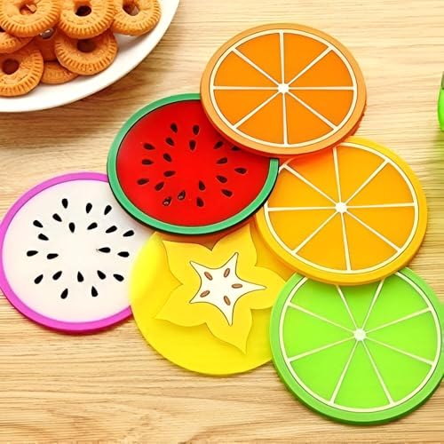 Generic - قواعد أكواب مزخرفة - ارتقِ بديكور منزلك باستخدام هذه القواعد المصنوعة من السيليكون على شكل فاكهة والتي لا تحمي الأسطح من المشروبات الساخنة فحسب، بل تضيف أيضًا لمسة ممتعة وأنيقة إلى مطبخك 5 قطع.