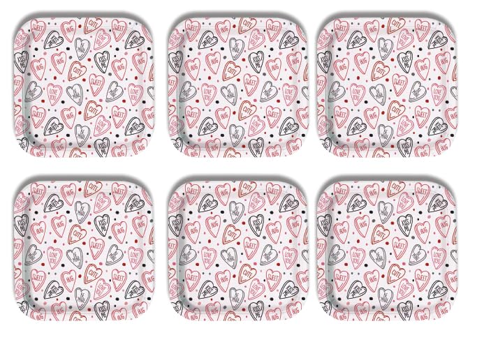 Generic - قاعدة أكواب ديكورية مربعة الشكل بنمط قلوب، وردي ورمادي، مجموعة من 6 قطع