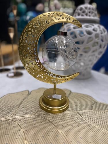 Generic - حامل هلال مزخرف على شكل قمر مع كرة زجاجية، تصميم مخرم معدني ذهبي، لتزيين الطاولة