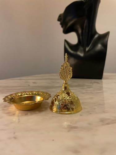 - تصميم فاخر: مبخرة مذهبة بلون ذهبي لامع مع زخارف منحوتة بإتقان على الغطاء والقاعدة تضيف لمسة من الأناقة والفخامة