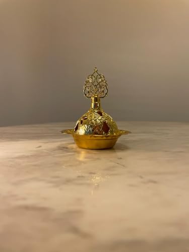 - تصميم فاخر: مبخرة مذهبة بلون ذهبي لامع مع زخارف منحوتة بإتقان على الغطاء والقاعدة تضيف لمسة من الأناقة والفخامة