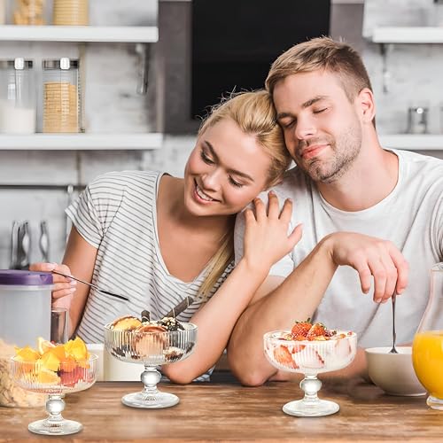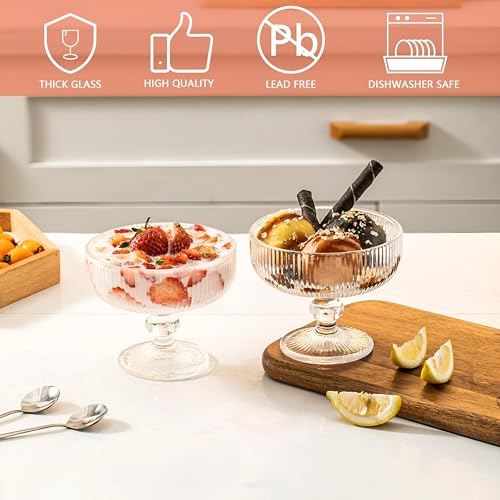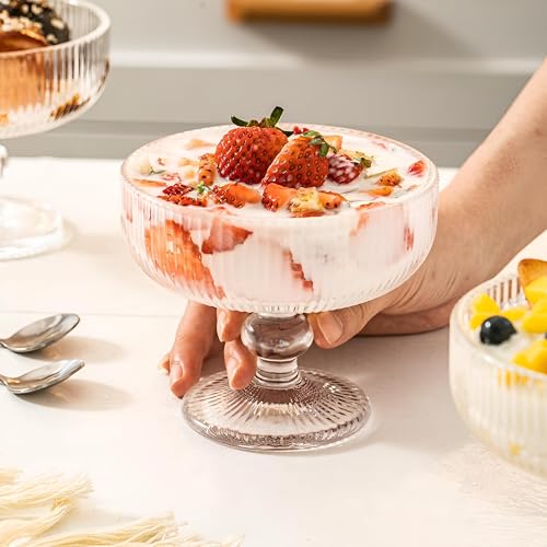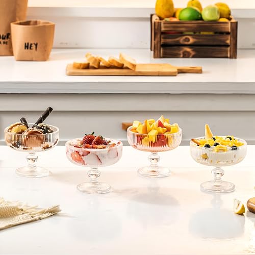 Generic - أكواب حلويات ديكورية من الزجاج المقولب بلمسة نهائية كلاسيكية لا تتأثر بمرور الزمن، لتقديم الزبادي والجيلي والايس كريم وسلطات الفاكهة وبودنج الأرز والحلوى الصغيرة، مجموعة من 6 قطع