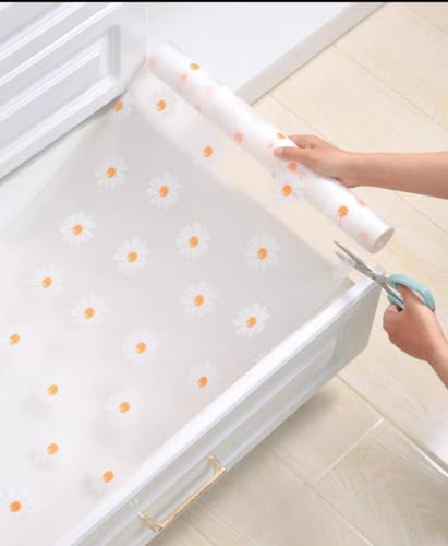 Generic - بطانة ادراج مزخرفة بنمط زهرة الاقحوان، 5 متر × 45 سم، سجادة خزانة المطبخ مقاومة للماء، ابيض