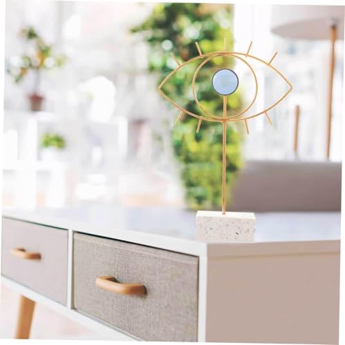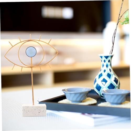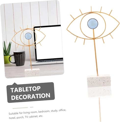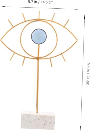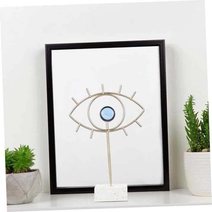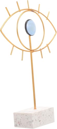 Generic - منحوتة عين مزخرفة، اطار سلك معدني ذهبي مع مركز ازرق، قاعدة تيرازو، ديكور منزلي فني عصري (قطعة واحدة)