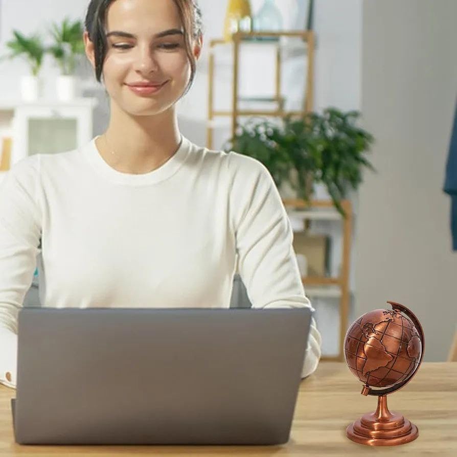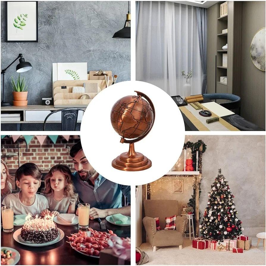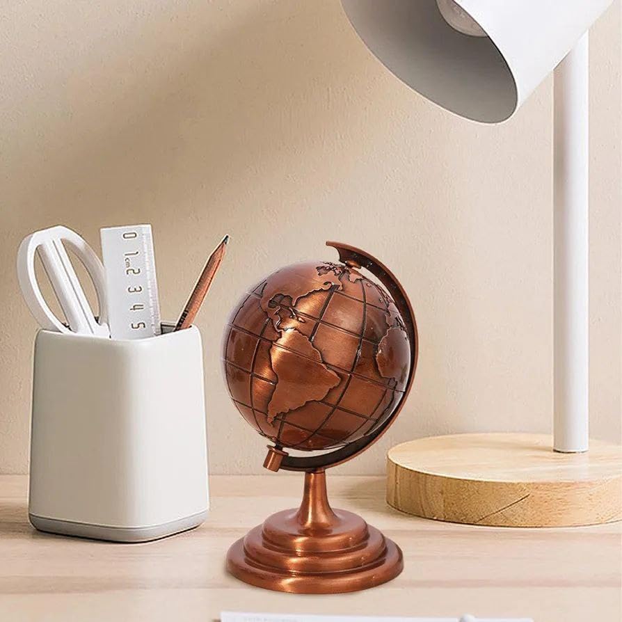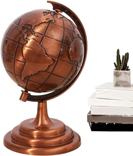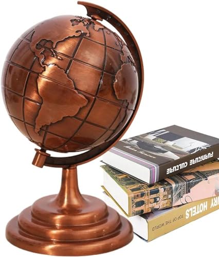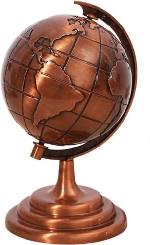 Generic - تمثال ديكور - مجسم مصغر للأرض - كرة ديكور للمكتب - كرة دوارة حديدية عتيقة: تحفة فنية صغيرة للمكتب مصنوعة من المعدن بلون برونزي