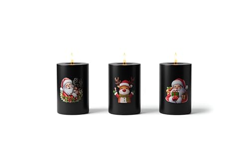 Generic - شموع سانتا للزينة بدون لهب - مجموعة شموع LED بيضاء للكريسماس مع سانتا ورجل ثلج وشخصيات عطلة تعمل بالبطارية لديكور المنزل الاحتفالي (3 شمعة كريسماس سوداء صغيرة)
