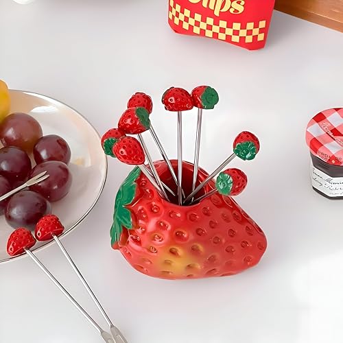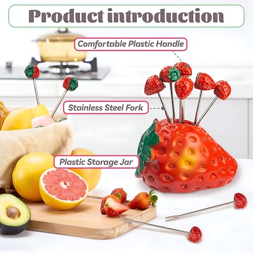 - تصميم ساحر بطابع الفاكهة: تتميز كل شوكة بمقبض بورسلين على شكل فواكه، مما يضيف لمسة مرحة وأنيقة إلى أي إعداد طاولة. الحامل المزخرف، المصمم على شكل فاكهة، يحول الطعام العادي إلى تجربة بصرية مبهجة.