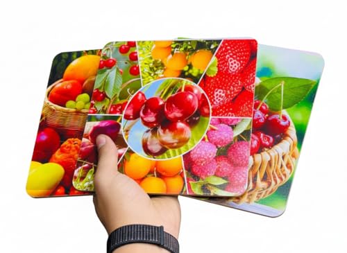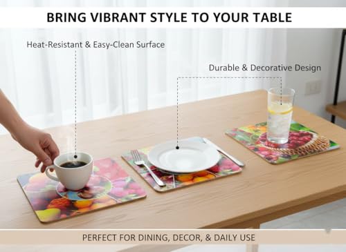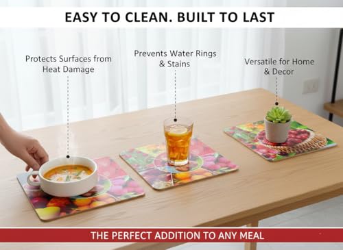 Generic - مفارش مزخرفة بطبعة فواكه، قواعد اكواب خشبية مقاومة للحرارة وسهلة التنظيف، مفارش طاولة متينة كبيرة الحجم بتصميم نابض بالحياة