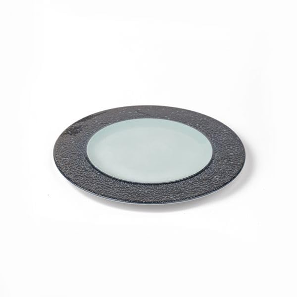 - تصميم أنيق: طبق عشاء عصري يتميز بحافة سوداء راقية ذات قوام محبب تحيط بمركز زجاجي ناعم، مثالي لإعدادات المائدة الحديثة.