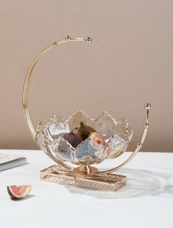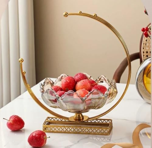 Generic - بولة للفاكهة زجاجية مزخرفة مع حامل معدني بتصميم هلال ذهبي، 29 سم